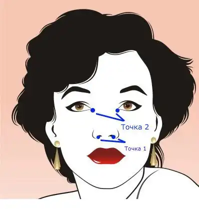 Первая точка находится в нижней части обеих ноздрей.