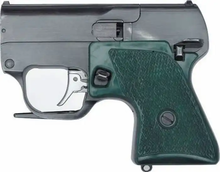 Этот пистолет лязгом подвижных частей себя не выдавал, у него и просто не было. Выше я уже рассказывал вам про принцип работы патрона в револьвере Гуревича, по такому же принципу создан и патрон "Змея". Только вместо воды, порховой заряд там отделен поршнем.