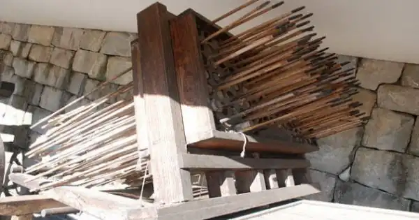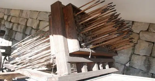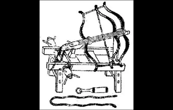 Изобретенная и совершенствуемая во времена расцветов греческой и римской империй, баллиста представляла собой по сути гигантский арбалет, установленный на тележке. Но ее дуга не сгибалась, как у обычного арбалета. Вместо нее между скрученными мотками веревки устанавливались твердые лучи из древесины. Когда заводился рычаг, концы дуги вращались в обратную сторону и скручивали веревки, создавая натяжение. Это было очень мощное оружие, но китайцам было мало одного лука. Они захотели сразу три. Эволюция многолуковой аркбаллисты была постепенной, началась с династии Тан, с арбалета, который использовал два лука для дополнительной мощности. Записи с того периода показывают, что этот лук мог выстреливать железный болт на 1100 метров, что в три раза дальше, чем могли другие осадные арбалеты. Но спустя двести лет вторжение монгольского ига вдохновило китайцев на добавление еще одной дуги к аркбаллисте. В самом начале династии Сун они выкатили "санчонг чуанцзи ну" - "небольшое ложе с тремя луками".