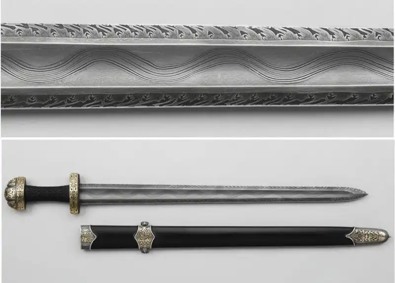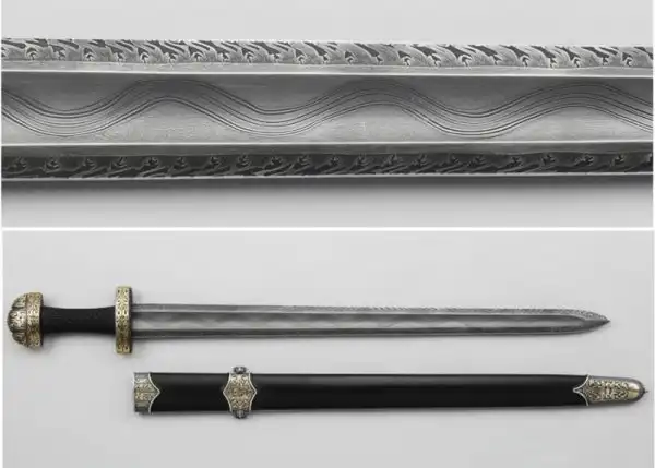 Один из основных видов клинкового оружия, да и вообще самый распространённый инструмент для войны. Представлял из себя, как правило, две или три стальные пластины наваренных на железную сердцевину. Рукоять состояла из перекрестья, навершения и стержня. Интересен тот факт, что с годами мечи делались всё меньше и легче. Так, образцы датируемые IX—X веком, в среднем были 120 см длиной и весили около 2 кг. У более поздних мечей XI—XIII веков, габариты уже меньше: около 86 см и 1 кг веса. Мечи были дороги, потому как основная их часть завозилось из Каролингской империи. Местное производство было крайне незначительным. Зато практически все рукояти у привезённых мечей заменялись на собственные, местного производства.