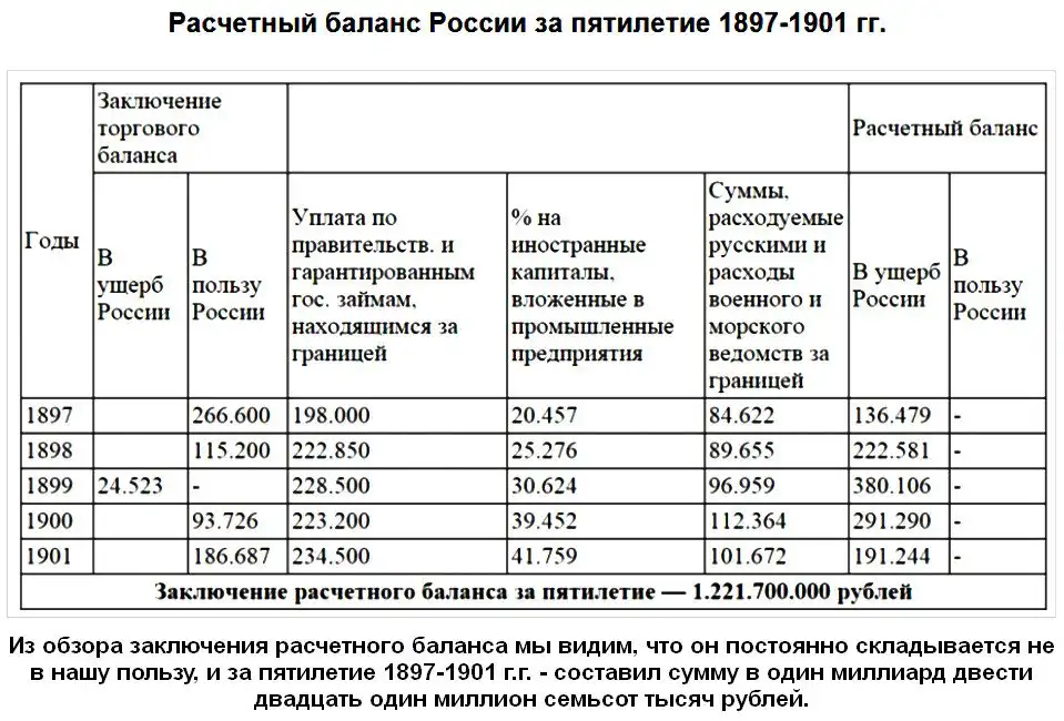 Глубокий экономический анализ этих "благостных" деяний Витте, провёл Александр Дмитриевич Нечволодов (25.03.1864 - 5.12.1938) - русский военный, участник Русско-Японской и Первой Мировой войн, историк, автор трактатов по экономике. Генерал проанализировал статистику финансово-экономического состояния России за 1882-1906 гг. и пришел к выводу о том, что долг и уплата процентов по золотым кредитам стали напоминать репарации и контрибуции. Всё это Нечволодов назвал откровенной распродажей России и государственной изменой. Нечволодов отметил, что "Россия за 20-летний период 1882-1901 гг. уплатила за границу около 5740 млн. руб... т. е. мы уплачиваем иностранцам в каждые 6,5 лет дань, равную по величине контрибуции, уплаченной Францией своей победительнице Германии... Без войны, без затрат, без человеческих жертв, иностранцы все более и более побеждают нас, каждые 5-6 лет нанося нам финансовый разгром, равный разгрому Франции". (Похоже им понравилось, и они разыграли тот же сценарий у нас, в лихие 90-е)