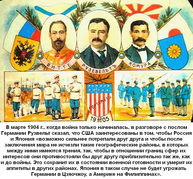 Как мы уже знаем, после свершения революции, агрессивные планы США направлялись на овладение обширными и богатыми территориями Сибири и Дальнего Востока. Но эти русские земли они рассматривали как сухопутье из Америки в Европу ещё далеко до войны 1914 года и добивались сооружения "космополитической железной дороги" - Транссибирской магистрали через Сибирь, Дальний Восток и Китай, которую они могли бы взять в свои руки и не только это... Чтобы проводить свою политику и интересы на территории России, Сибири и Дальнего Востока, для этих, далеко идущих целей в 1889 году, граф Сергей Юрьевич Витте становится директором департамента железных дорог Министерства финансов, с августа 1892 года по 1903 г. - министром финансов, с августа 1903 года - председатель Комитета министров. В 1905 году возглавлял русскую делегацию, подписавшую Портсмутский мирный договор России с Японией. С октября 1905, по апрель 1906 года - глава Совета министров. Член Государственного совета и председатель Комитета финансов до 1915 года. Стоит вначале описать тёмные деяния этого "дельца", которые привели к трагедии государства Российского и миллионам напрасных жертв.