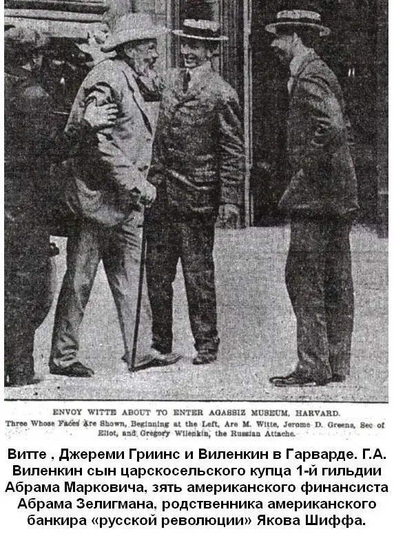 Деловым представителем Животовского в США являлся Соломон Розенблюм ("Сидней Рейли") - шпион, работающий на МИ-6 через английского резидента в США Уильяма Вайсмана. Вместе с ним в одном кабинете работает Александр Вайнштейн, устраивавший в Нью-Йорке сборища российских революционеров. Его брат, Григорий Вайнштейн, являлся владельцем газеты New World ("Новый мир") - редактором которой в США становится Троцкий, там же работают Бухарин, Коллонтай, М.Урицкий, М.Володарский-Гольдштейн, Г.И.Чудновский. В том же здании располагается и банковская контора Вениамина Михайловича Свердлова, (младшего брата Якова Свердлова, того самого, который до крещения был Ешуа-Соломон Мовшевич), - близкого друга Розенблюма-Рейли... и т.д. Теперь Вам понятно, кем на самом деле был министр финансов, граф Витте С.Ю. - граф Полусахалинский.