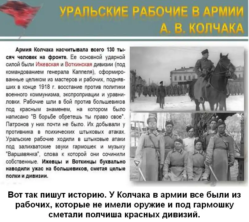 Красные неотступно идут по пятам. И, как всегда бывает на тонущем корабле, крысы покидают его. Колчака внезапно и коварно предают бывшие союзники - чехословацкий корпус. Чехи видят: из сибирского капкана живыми им не выбраться. С запада наседают красные армии. Впереди на востоке - красные партизаны. И чехословацкие командиры принимают решение - спастись ценою головы Колчака и русского золота. Но это по официальной версии, на самом деле чехи находились в составе войска англо-американской коалиции и подчинялась американскому генералу Гревсу лично. Сам же Колчак был прислан из Америки и стал Верховным правителем Сибири именно на американских штыках и деньгах. Поэтому Колчак сам своею судьбой не распоряжался, он был марионеткой в руках англосаксов, а так, как в конце решил быть независимым и не отдавать золото, то вскоре был арестован и выдан иркутскому ревкому, где после без суда и следствия его расстреляли за ненадобностью.