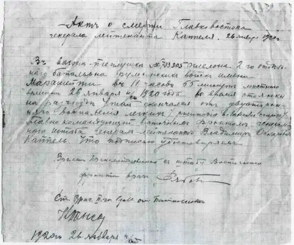 1 марта 1920 года в селе Кайтул белочехи подписывают соглашение. Они обязуются выдать представителю Ревкома Иркутска золотой эшелон - 18 вагонов, содержащих 5143 ящика и 1578 мешков с золотом и другими драгоценностями (311 тонн), номинальной стоимостью 408 млн. золотых рублей. Чехи надеются, что, выдав золото, они получат право спокойного проезда на Восток по Транссибу.