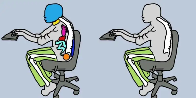 Сидячее положение — расслабленное. Из-за этого могут сокращаться связки. Особенно это справедливо, если вы сидите криво или же на неудобном стуле. В наихудшем варианте это ведет к атрофии мышц и постоянным болям.