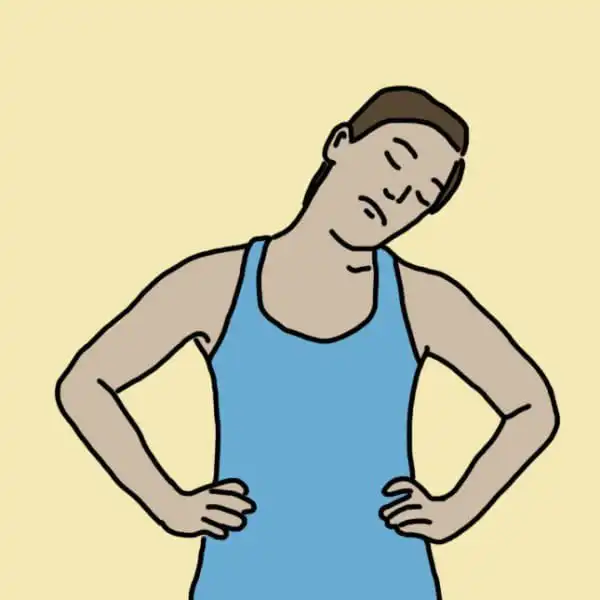 Исходное положение: стоя, ноги на ширине плеч, руки вдоль туловища. Наклоните подбородок к груди.