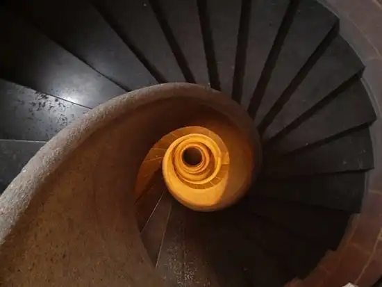 В Средневековье винтовые лестницы строились, как правило, из камня и «закручивались» по часовой стрелке. Это была мера предосторожности на случай атаки — мечники в основном держали меч в правой руке, и такое расположение лестницы ставило их в невыгодное положение.