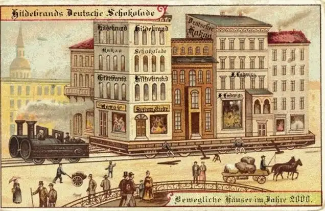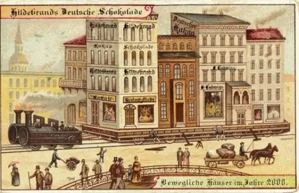 Свою версию жизни через 100 лет продемонстрировали и в Германии. В 1900-том году в коробках шоколадных конфет было выпущено дюжина карточек, посвященных 2000 году.
