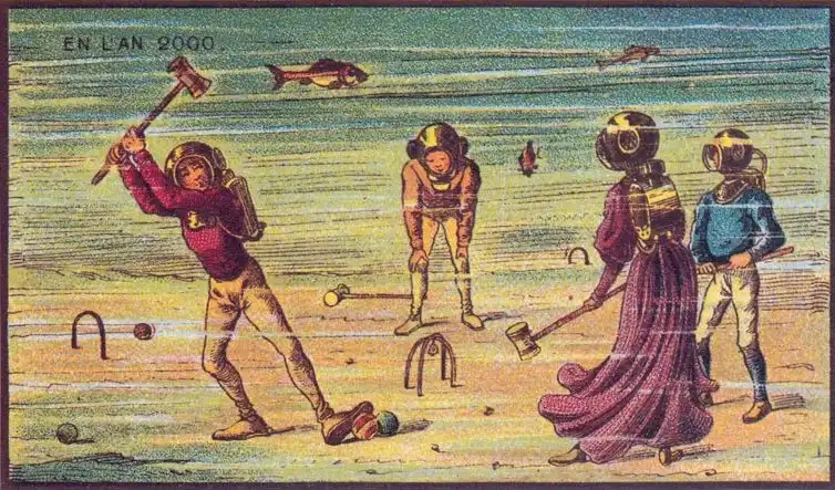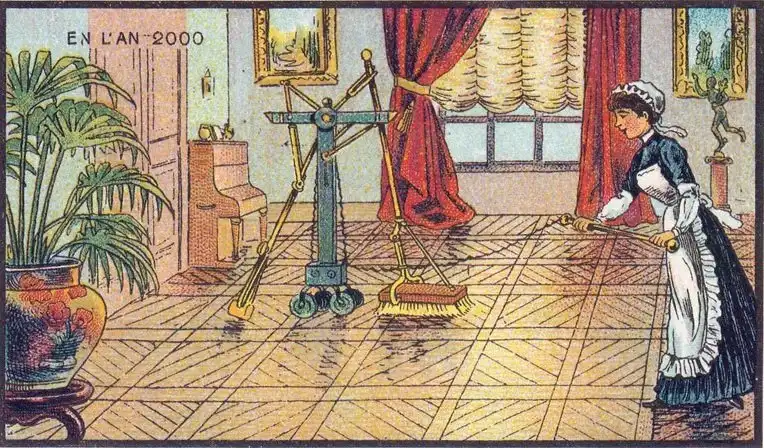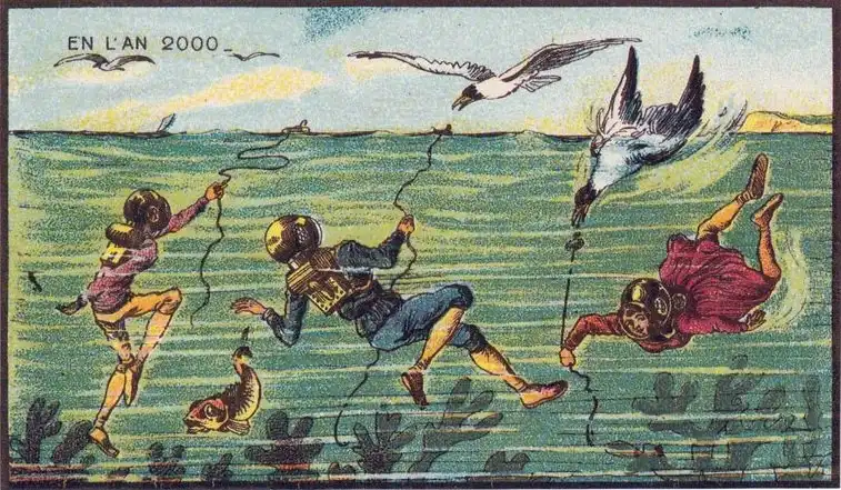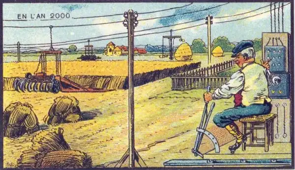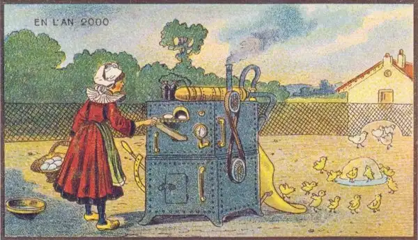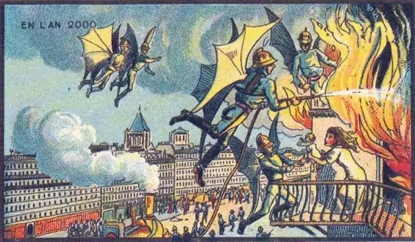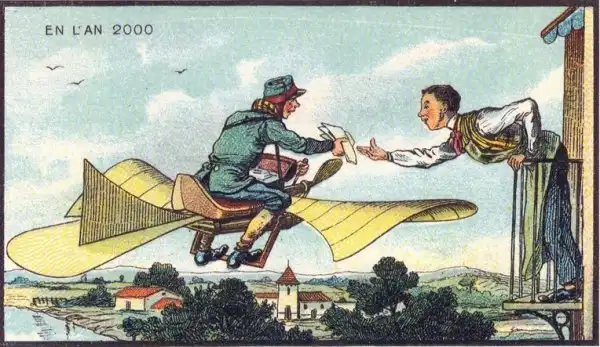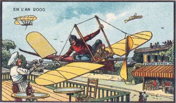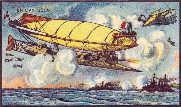 Знаменитый в свое время французский живописец Жан-Марк Коте, в 1900-х годах нарисовал свою фантазию под названием "В 2000 году". Сначала его картинки выпускались, как развлекательные иллюстрации в сигаретных наборах, а после разорения фабрики, тиражировались в коробках с игрушками.