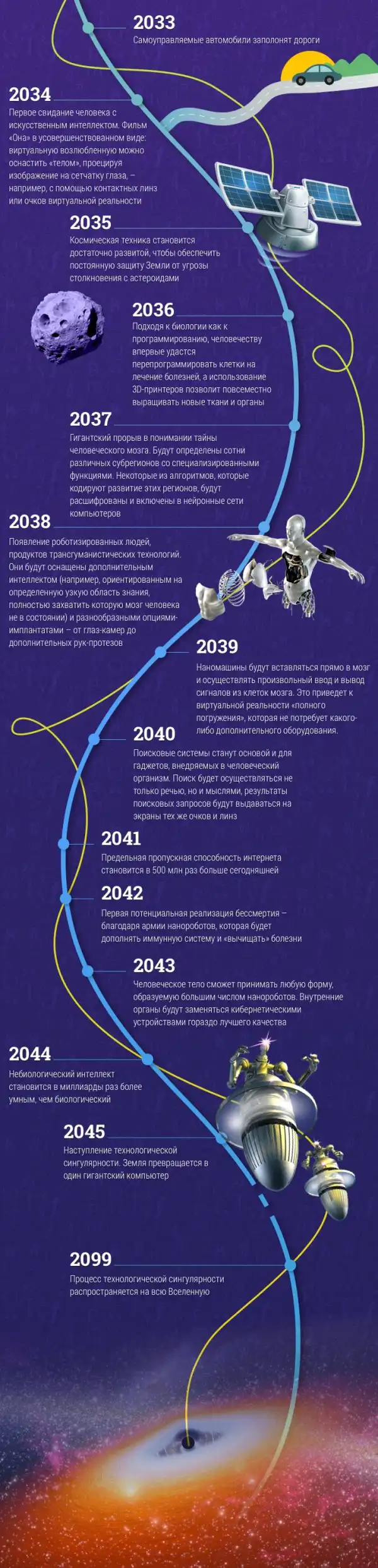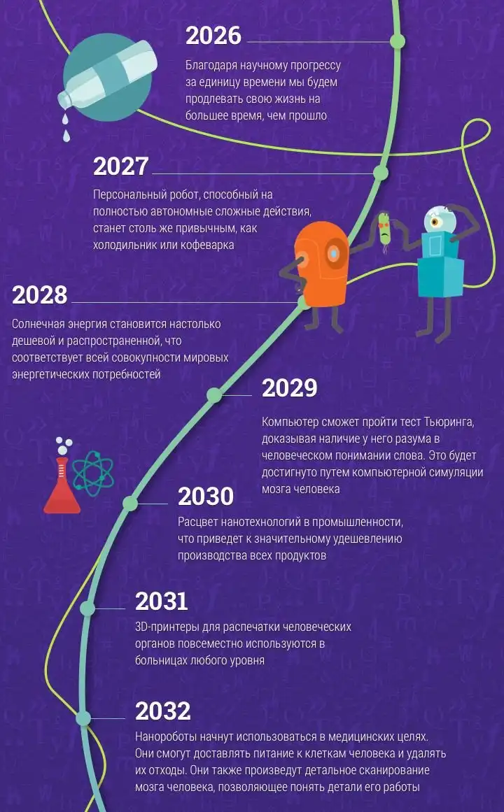 Известный футуролог и технический директор Google за 20 лет в своих книгах, блогах, интервью и лекциях расписал наше будущее по годам.