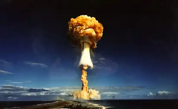 Термоядерный синтез — процесс, который происходит во время детонации водородной бомбы — самый мощный тип доступной человечеству энергии. В мирных целях его использовать мы еще не научились, зато приспособили к военным. Эта термоядерная реакция, подобная той, что можно наблюдать на звездах, высвобождает невероятный поток энергии. В атомной же энергия получается от деления атомного ядра, поэтому взрыв атомной бомбы намного слабее.