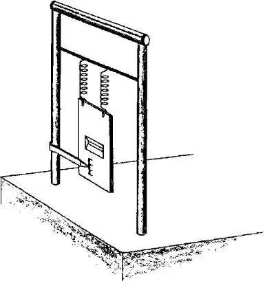 Как Бор выходил из создавшегося положения? Он заменил первый экран на экран, подвешенный на двух пружинах (на рисунке ниже). Пружины в свою очередь были закреплены на неподвижной рамке. На экран нанесена шкала, а на рамке была установлена стрелка. Установка получилась достаточно чувствительной, чтобы можно было измерить импульс электрона в момент пролета через щель.