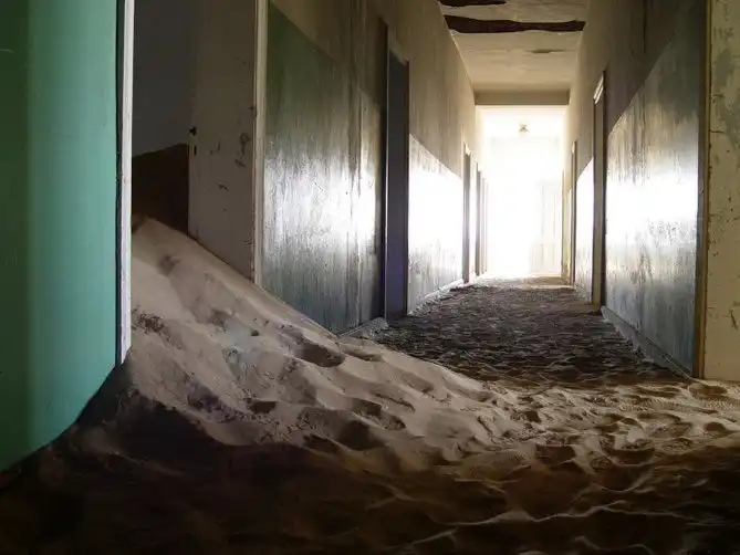 Более ста лет назад железнодорожник Закарис Левал нашёл на берегах реки Оранжевой (Африка) сверкающие камушки - алмазы, и стал думать, каким образом драгоценные породы туда попали. Выяснилось, что алмазы приносит ветер, дующий из пустыни Намиб, - люди, естественно, не заставили себя долго ждать, и за считанные месяцы посреди необитаемых песков вырос красивый город - Колманскоп. И всё бы ничего, вот только запасы алмазов быстро закончились, и люди, уставшие от засухи, высоких температур и песчаных бурь начали покидать его. Так Колманскоп постепенно превратился в город-призрак, где улицы и дома почти полностью засыпаны песком. С одной стороны, это удручающее, наводящее ужас зрелище, а с другой - уникальный музей под открытым небом.