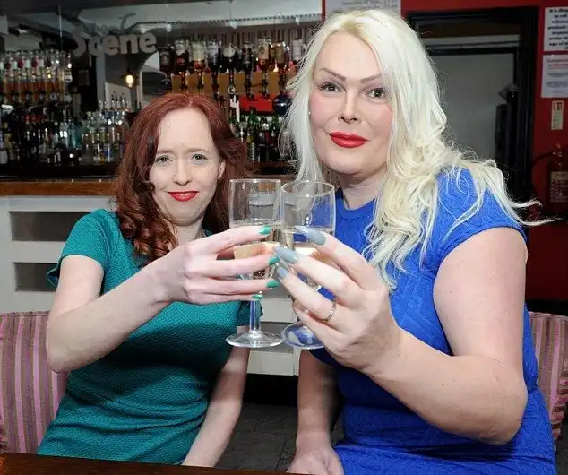 Здоровенная блондинка-транс ходит по барам с бывшей женой в поисках идеального мужика