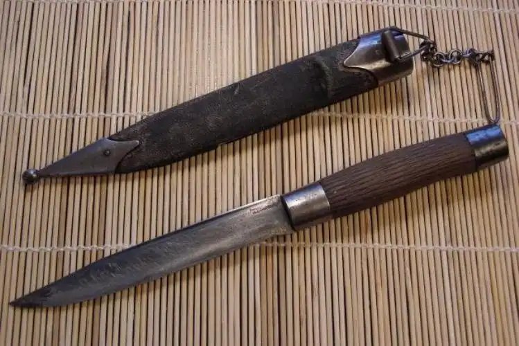 Русский засапожный нож – как следует из названия, прятали за голенищем сапога. Удобный способ транспортировки, когда заняты руки и дополнительное средство защиты на случай опасной ситуации. Засапожник упоминается в печатной версии «Слова о полку Игореве», вышедшей в 19 веке.