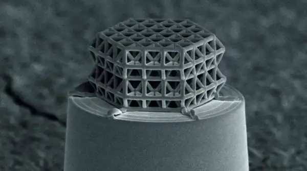 Специалисты из KIT говорят, что их решетчатая конструкция берет новые вершины прочности для метаматериалов (рукотворных материалов, обладающих свойствами, которые не встречаются в природе) благодаря своим размерам, которые примерно в пять раз меньше других аналогичных метаматериалов. Конструкция состоит из стеклоуглерода, являющегося одной из форм чистого углерода, но при этом наделенного свойствами стекла, керамики и графита.