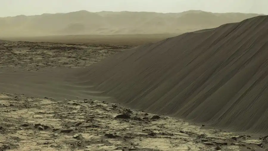 Долгие два года Curiosity не решался подступиться к горе Шарпа, хотя был послан для ее изучения. Мешали отложения темного песка, которые перегородили путь, поэтому их приходилось обходить стороной. Марсоход двигался вдоль горы, а черные дюны постоянно маячили у подножия, иногда напоминая застывшее море, иногда - старое шоссе.