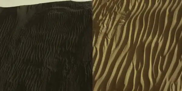 Отчасти это объясняет почему издалека дюны резко выделялись на фоне окружающей местности, а по мере приближения к ним, контраст сокращался. Возможен еще эффект "черно-синий / бело-золотой".