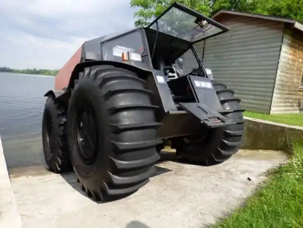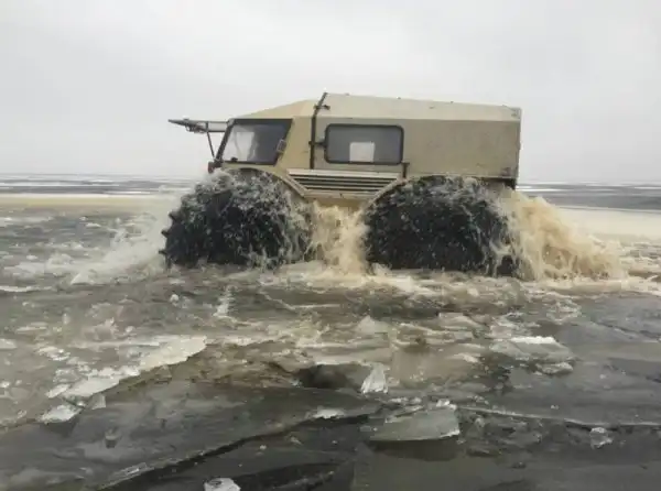 Какие характеристики отличают вездеход Шерп от других подобных авто? Оказывается, секрет в пневмоциркуляционной подвеске. Наличие на всех шинах вездехода воздушных каналов с изменяемым сечением, регулирующееся в зависимости от препятствий, на которые наезжает машина - главная особенность Шерп. Благодаря этим возможностям вездеход может плавать, и даже самое непроходимое болото не станет преградой на его пути. В подтверждение этому - видео, выложенное в сети, с испытаниями машины в самых труднопроходимых уголках российской глубинки.