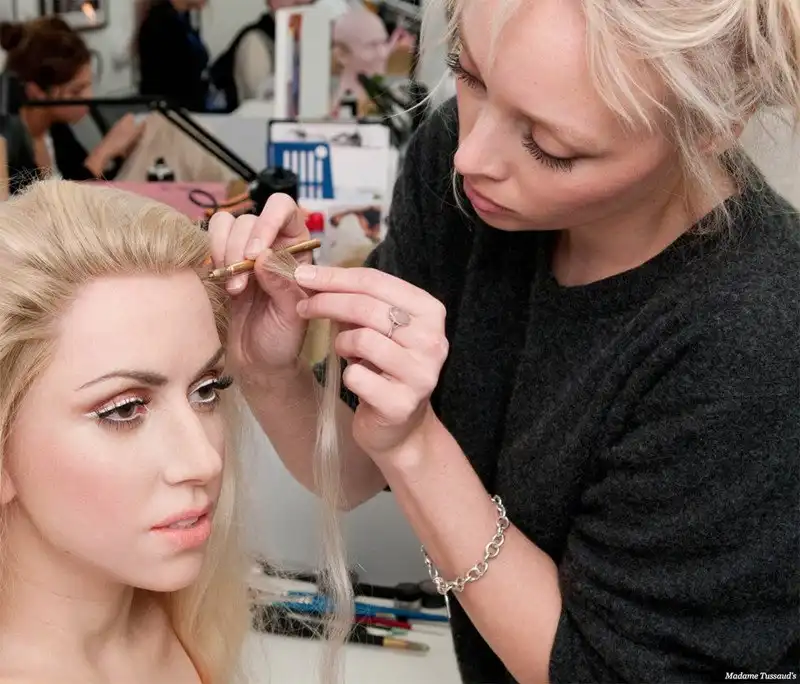 Каждая тоненькая прядка прикрепляется вручную. Этот процесс может занять до 6 недель. На фото скульпторы «оволосили» Леди Гагу.