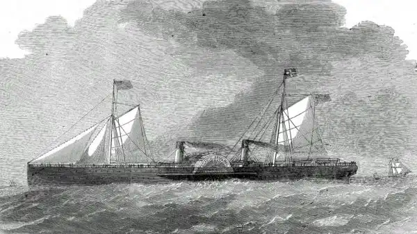 Чтобы построить Connaught, понадобилась тысяча человек. Они работали над кораблем девять месяцев кряду. Это было могучнее судно - 113 метров в длину - второй по размерам пароход в мире на тот момент, уступающий только гигантскому пароходу Great Eastern. Пароход с боковым колесом Connaught должны был отправиться в Северную Атлантику. Он вез эмигрантов в Новый Свет, почту и, конечно, переправлял богатых пассажиров туда и обратно с шиком и роскошью. Запущенный в Ньюкасл-апон-Тайн, Англия, 21 апреля 1860 года, первый рейс Connaught завершил за пару месяцев. Но завершить второй так и не пришлось.