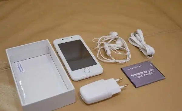 Дизайн смартфона Freedom 251 довольно прост, хотя не без попытки позаимствовать решения у Apple. Например, основная кнопка Home очень похожа на ту, что используется в последних моделях iPhone. В комплект входят зарядка, наушники, USB-кабель, аккумулятор и сам смартфон. И все это за 4 доллара (порядка 300 рублей, по текущему курсу).