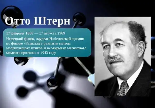 В 1943 году за работы по атомным и молекулярным пучкам Отто Штерну вручили Нобелевскую премию. За 10 лет до этого он был изгнан из Германии и поселился в США. Там - и во время войны, и после - ему не удалось получить достаточного финансирования для своих научных проектов, и поэтому, не дожидаясь даже своего 60-летия, он ушел на пенсию и уехал в Калифорнию. Остаток дней Штерн посвятил радостям гастрономии и кино, к которым давно питал слабость. Он скончался 81-летним, в кинозале, куда пришел посмотреть новый фильм.