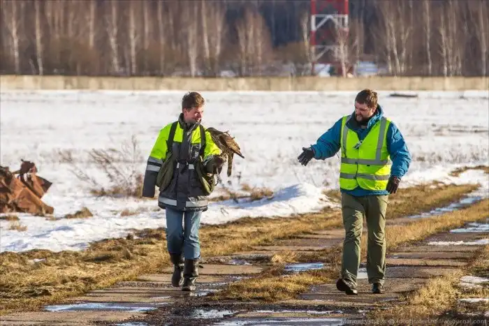 В процессе так называемого «вынашивания» специалисты-орнитологи приучают птицу к себе, окружению, специфическим условиям работы на аэродроме. Главная задача специалиста – найти с птицей контакт, добиться от нее доверия и привыкания к технике и персоналу.
