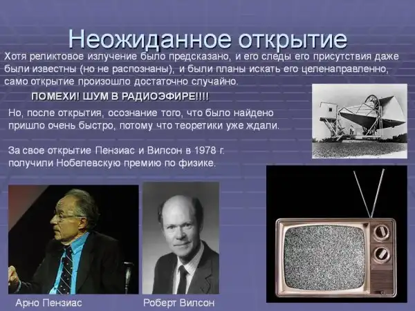Дикке и Пиблз быстро сообразили, что Пензиас и Вильсон напали на их добычу. Однако самих Пензиаса и Вильсона встреча не впечатлила, тем более что Вильсон учился космологии по Фреду Хойлу: этот британский астроном провозгласил теорию "стационарного состояния" и не признавал Большой взрыв. (К слову, само это название - Большой взрыв - Хойл придумал в порядке издевки над концепцией Гамова.) Так или иначе, в июле 1965 года обе группы опубликовали свои статьи в одном и том же журнале: Пензиас и Вильсон просто докладывали о своих наблюдениях, не делая никаких выводов, а Дикке с коллегами излагали теоретические основания, позволявшие отождествить открытое излучение как реликтовое. В 1978 году нобелевские медали достались Пензиасу и Вильсону.
