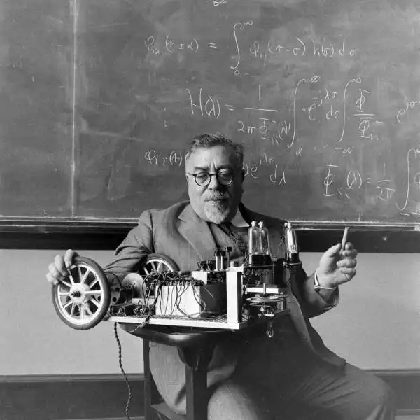Норберт Винер (1894 - 1964) - мечтатель, выдающийся математик, прославившийся пионерскими работами по кибернетике (кстати, само слово "кибернетика" придумал именно он). Он был профессором Массачусетского технологического института, где его невероятные математические и аналитические способности, тщеславие и рассеянность породили множество легенд. Однажды (и тому были свидетели) он доказывал перед студентами какое-то математическое утверждение, и, перескакивая с одной логической глыбы на другую, ничего не объяснял. Когда кто-то из сбитых с толку слушателей спросил Винера, не может ли он повторить все чуть медленней, тот любезно согласился, затем замер, молча и неподвижно, и, простояв так перед доской несколько минут, с довольной улыбкой добавил завершающий штрих к последней строке.