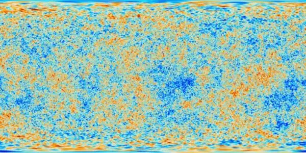 Однако мы могли бы использовать и проекцию Меркатора, как с Землей. Вот вам доказательство: это космический микроволновый фон, изображенный так же, как вы обычно смотрите на карту Земли.
