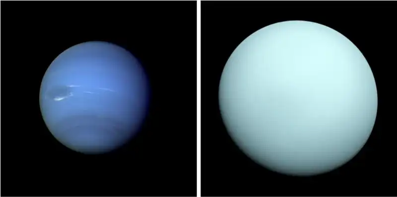 Уран и Нептун, два других голубых мира Солнечной системы, обладают атмосферами, состоящими преимущественно из водорода, гелия и метана. (Нептун богаче льдами и обладает более широким разнообразием компонентов, следовательно, имеет другой оттенок). В достаточно больших концентрациях, метан чуть лучше поглощает красный свет и чуть лучше отражает голубой, чем другие длины волн, тогда как водород и гелий практически прозрачны для всех частот видимого света. В случае голубых газовых гигантов, действительно имеет значение цвет неба.