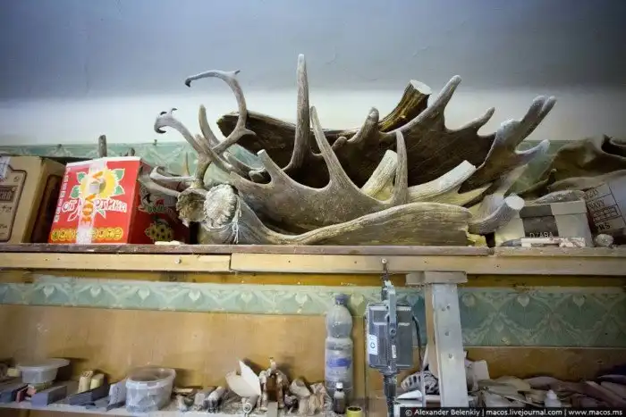На антресолях мастерской лежал ворох лосиных рогов. Тоже материал, но Владимир сказал, что с ним работать не интересно, разве что использовать в качестве вспомогательного.
