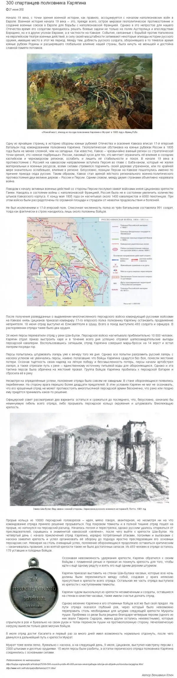 Одну из ярчайших страниц в историю обороны южных рубежей Отечества и освоения Кавказа вписал 17-й егерский батальон под командованием полковника Карягина.