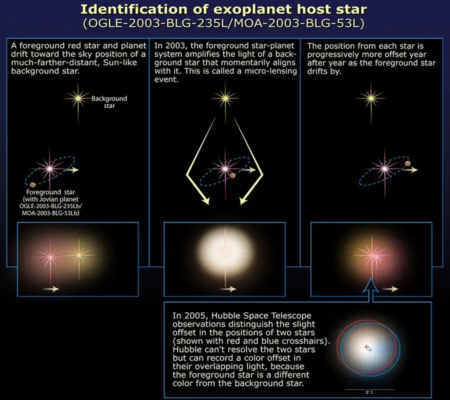 Оригинальный метод, основанный на эффектах отклонения луча света гравитационным полем массивных объектов. Эффект гравитационной линзы возникает если точно на линии нашего взгляда оказывается два ярких и достаточно массивных тела. Например звезда нашей Галактики проходит между нами и другой далекой звездой или галактикой. Гравитация близкой звезды влияет на свет далекого объекта, отклоняя его, и формируя эффект "линзы". Если гравитационное поле звезды деформируется гравитацией экзопланет в ее системе, то и "линза" получится "бракованная" - с нарушениями.