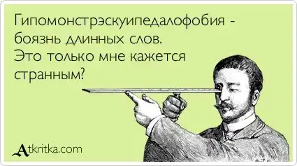 3. Hippopotomonstrosesquipedaliophobia даже по одному очень длинному названию, можно понять, что это боязнь длинных слов.