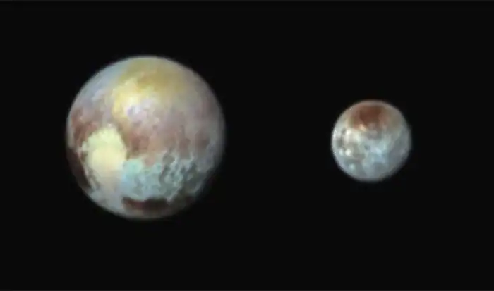 5. Плутон технически является частью «бинарной системы», образуя её со своим спутником Хароном. Это значит, что ни одно из космических тел не движется по орбите другого по отдельности — они обращаются по орбите друг друга, являясь двойной планетной системой Плутон – Харон.