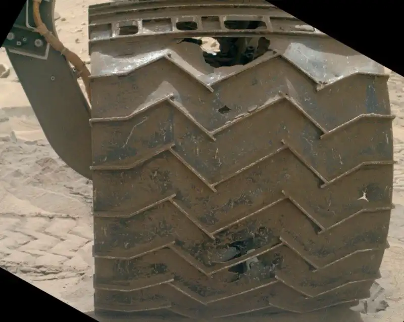Со временем этот ущерб только увеличился, что добавило вопросов инженерам. В конце концов, несмотря на острые и отточенные камешки, когда марсоход опирается на колеса с 1/6 своего веса, этого будет недостаточно достаточно, чтобы проделать дыру в колесе. Всему виной комбинация двух факторов:
