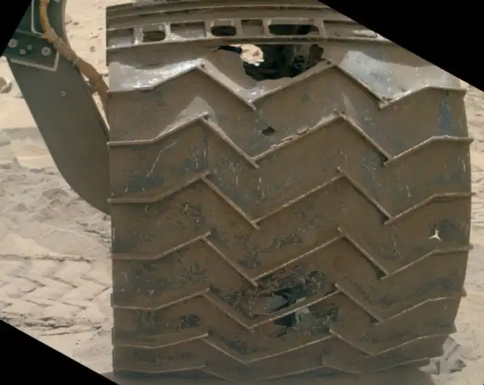 Марсоход "Кьюриосити" прибыл к горе Шарпа в сентябре 2014 года и с тех пор медленно исследует ее и взбирается по ней. Колеса поистине являются "ахиллесовой пятой" марсохода. Лучше тонкого алюминия ученые не придумали ничего, и сделать его еще на миллиметр толще означало бы добавить целую гирю веса, которая существенно усложнила бы и без того сложную посадку.
