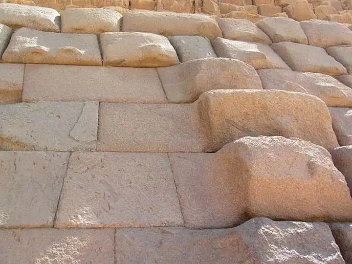 Пирамида Менкаура. Ещё один фрагмент стены. Возможно, процесс выравнивания не завершён.