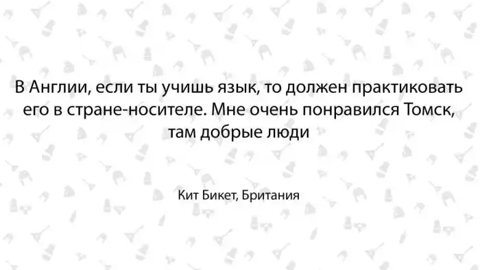 Кит учит английскому языку жителей Москвы. До этого языку учили его. Русскому: 6 месяцев он изучал его в сибирском университете, в Томске:
