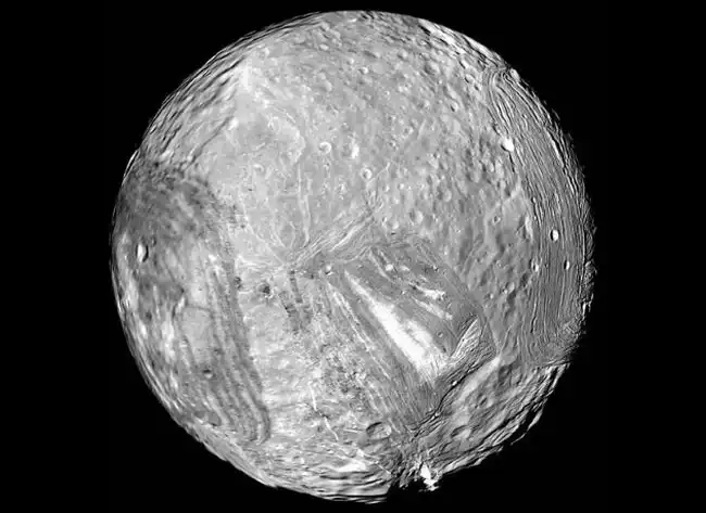 Мимас нередко называют "Звездой смерти". Вполне возможно, что под ледяной шапкой этого спутника может скрываться океан. И несмотря на общий зловещий вид этой луны, она, вероятно, действительно может подходить для поддержания жизни. Наблюдения космического зонда "Кассини" показали, что Мимас слегка раскачивается на своей орбите, что могло бы говорить о геологической активности под его поверхностью.