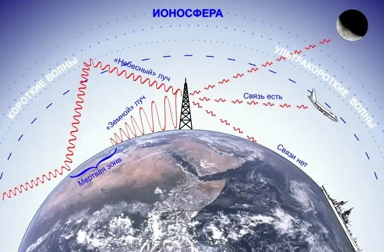 Немного физикиПочему вообще возникают проблемы со связью в космосе? Просто потому, что Земля круглая. А по круглой Земле радиоволны распространяются по-разному. Ультракороткие волны (УКВ, UHF) распространяются только в области прямой видимости, и, когда ваш собеседник скрылся за горизонт, связь пропадает. Короткие волны (КВ, HF, VHF), кроме прямой радиовидимости, могут отражаться от ионосферы, и вы можете беседовать с очень удаленным собеседником. Встречаются рассказы о том, как в районе южного полюса слушали КВ радио Москвы, дошедшее через многократные отражения от мощного слоя в ионосфере.