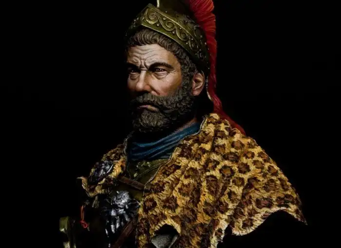 Карфагенский полководец, считающийся одним из величайших полководцев и государственных деятелей древности. В возрасте девяти лет Ганнибал дал клятву быть врагом Рима и придерживался её до самой смерти. Главнокомандующим карфагенских войск в Испании Ганнибал стал в 26 лет. Тогда же он начал серию своих завоевательных походов. Всего за два года покорив племена олькадов, ваккеев и карпетанов, сумев расширить влияние Карфагена на все территории к югу от Ибера.