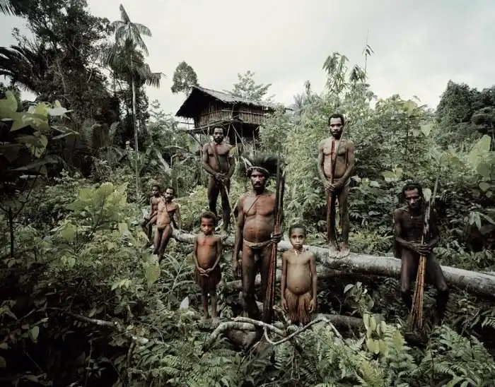 Местоположение: Индонезия и Папуа-Новая Гвинея. Снято в 2010 году. Короваи – одно из немногих папуасских племён, которые не носят котеки, своеобразные футляры для полового члена. Мужчины племени прячут свои пенисы, плотно обвязывая их листьями вместе с мошонкой. Короваи – охотники-собиратели, живущие в домах на деревьях. У этого народа строго распределены права и обязанности между мужчинами и женщинами. Их численность оценивают примерно в 3000 человек. До 1970-х годов короваи были уверены, что других народов в мире не существует.