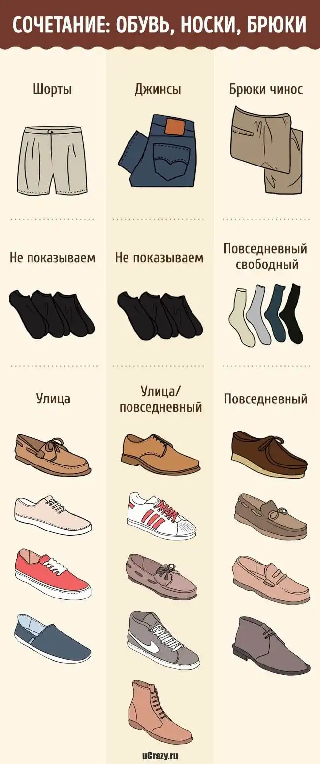 В помощь тем, кому небезразличен его внешний вид, uCrazy.ru публикует гид по мужской обуви: сочетания цветов, фасонов и стилей. Ведь всегда выглядеть на все 100% не так уж и сложно, зато как приятно!