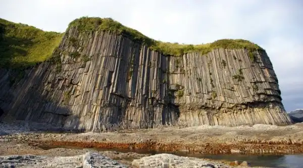 7) Везде на Курильских островах проглядывается японское прошлое. Есть бывшие японские заводы, японские кладбища, а практически всё тихоокеанское побережье Кунашира около устьев рек усыпано осколками довоенного японского фарфора и пустыми бутылками японского пива — хорошее место для археолога или просто коллекционера!