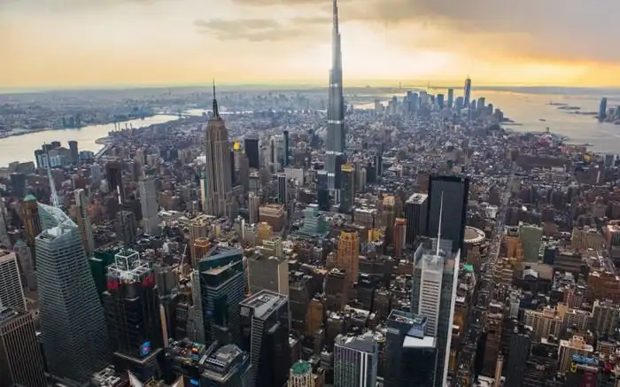 Самый высокий небоскреб Бурдж-Халифа в Дубае имеет высоту 829 метров, что на 304 метра выше Всемирного торгового центра и на 396 метра выше башни Эмпайр-стейт-билдинг в Нью-Йорке.