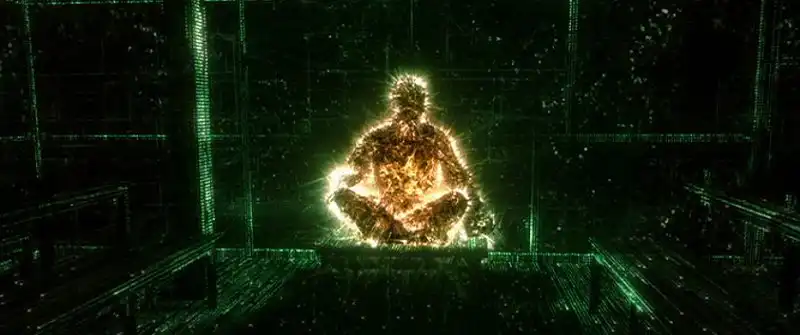 Ваш интерес привлекает полутемная комната, и вы заглядываете в нее. Ну и ну! Что это? На стене происходит действие театра теней, проецируемых находящимся сзади светом, но люди, наблюдающие действие, привязаны к своим сиденьям и не могут обернуться. «Что происходит?» — шепотом спрашиваете вы у женщины с проектором. «О, это демонстрация монистического идеализма профессора Платона. Люди видят только теневой театр материи и обольщаются им. Если бы они только знали, что тени отбрасывают находящиеся позади них "более реальные" архетипические объекты — идеи сознания! Если бы у них только была сила духа, чтобы исследовать свет сознания — единственную реальность», — сокрушается она.